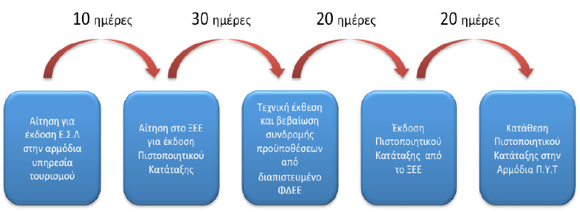 Τα Πιστοποιητικά Κατάταξης εκδίδονται από το ΞΕΕ (Ξενοδοχειακό Επιμελητήριο Ελλάδος) με βάση Τεχνική Έκθεση, η οποία συντάσσεται από Φορείς, όπως η εταιρεία μας, Διαπιστευμένους από το ΕΣΥΔ (Εθνικό Σύστημα Διαπίστευσης) για τη διενέργεια ελέγχων κατάταξης των τουριστικών καταλυμάτων σε κατηγορίες αστέρων και κλειδιών σε συμμόρφωση με το Διεθνές Πρότυπο ISO 17065.